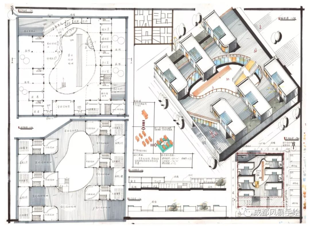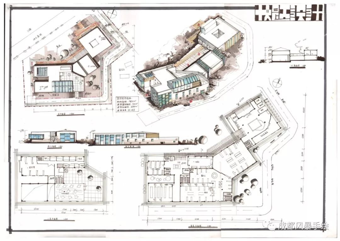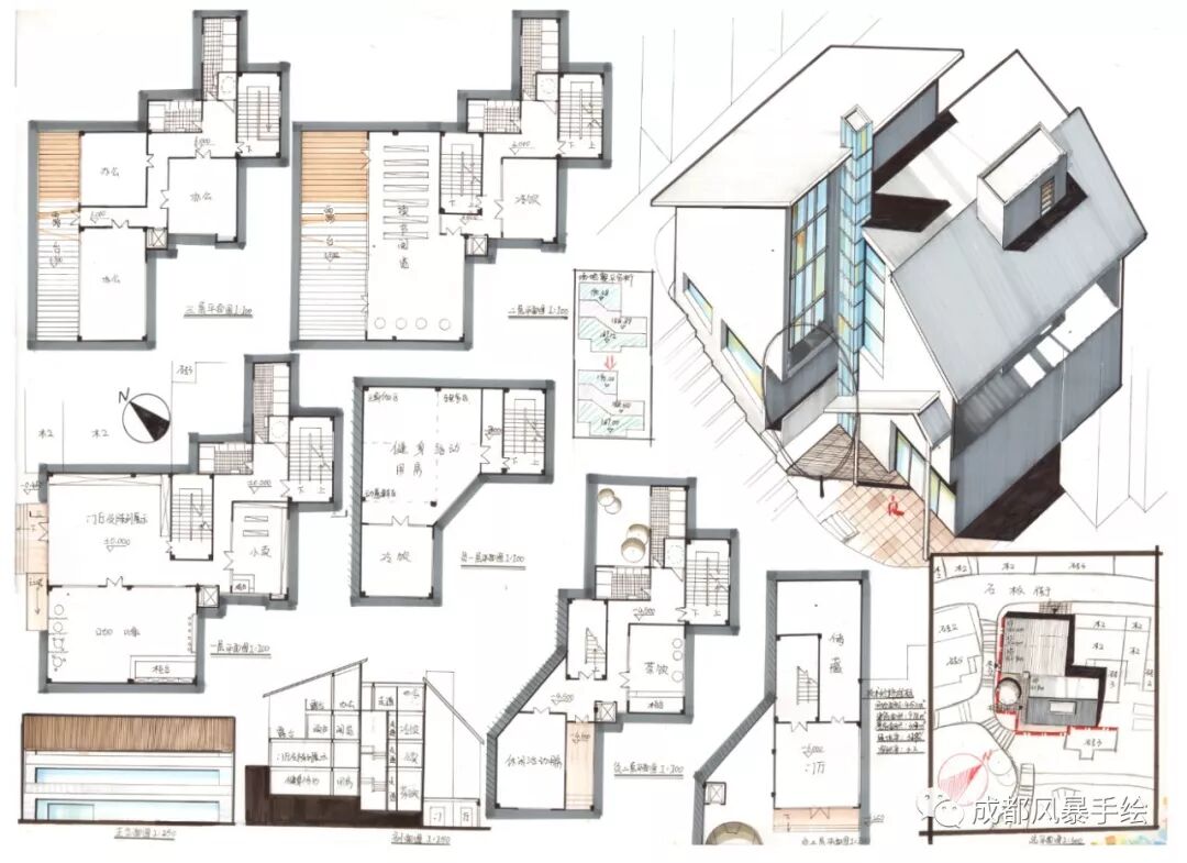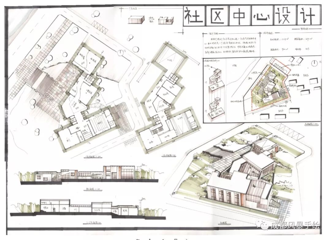 擅长建筑平面处理、建筑细节深化、建筑马克笔表达