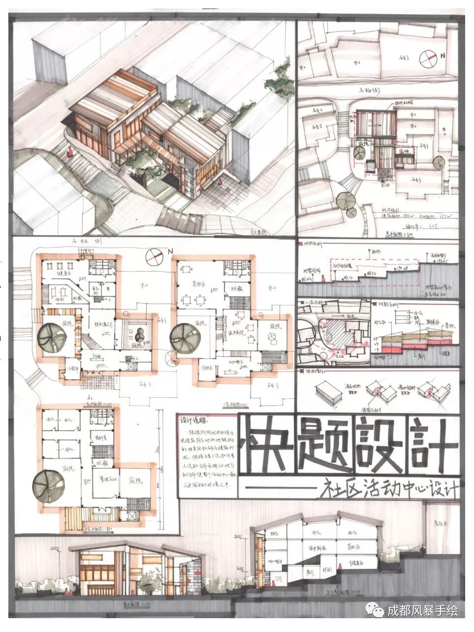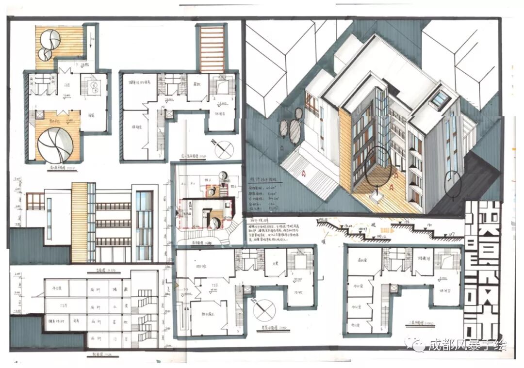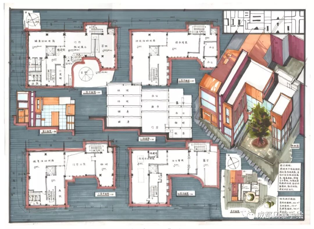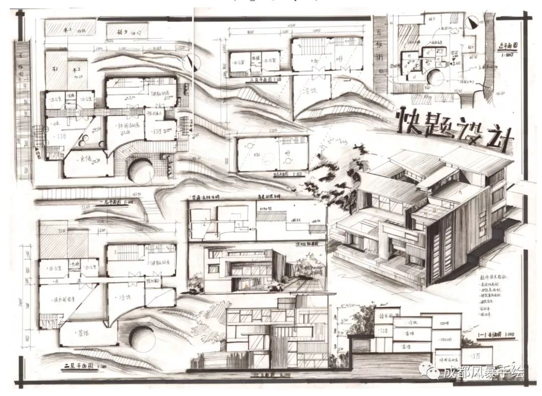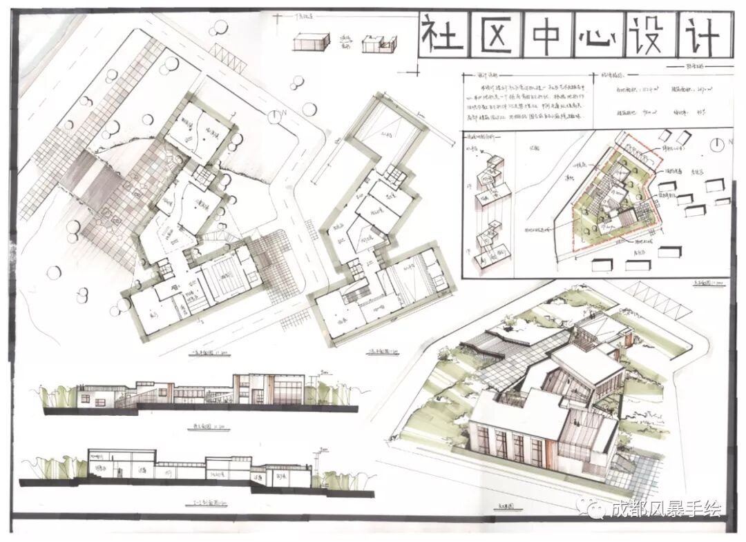 擅长建筑平面处理、建筑细节深化、建筑马克笔表达