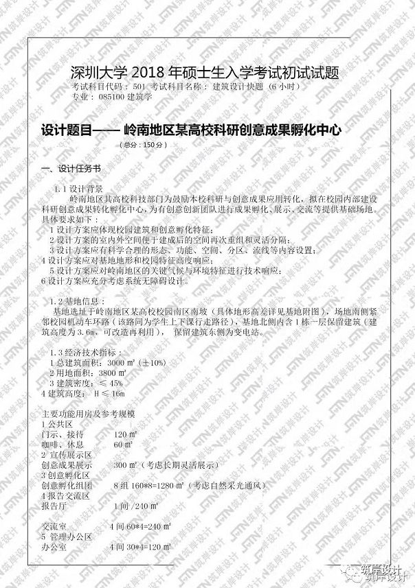 【真题突破】深圳大学2018初:岭南地区某高校科研创意成果孵化中心设计任务书讲解