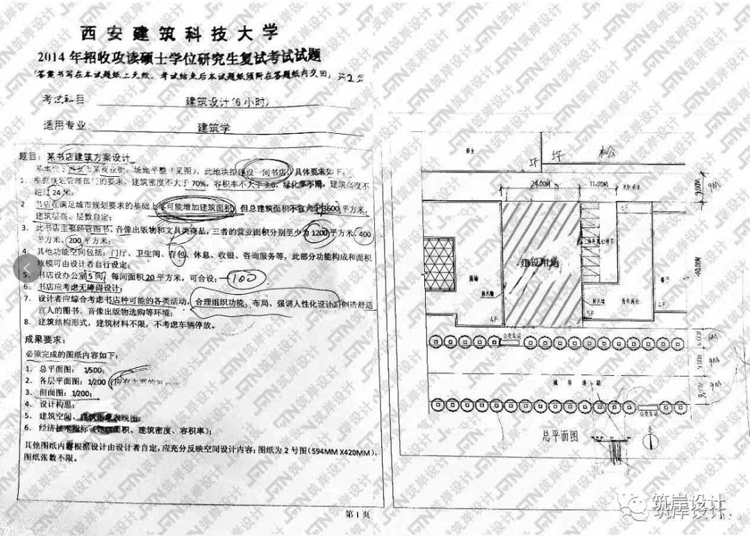 西安建筑科技大学2014初:某书店建筑方案设计