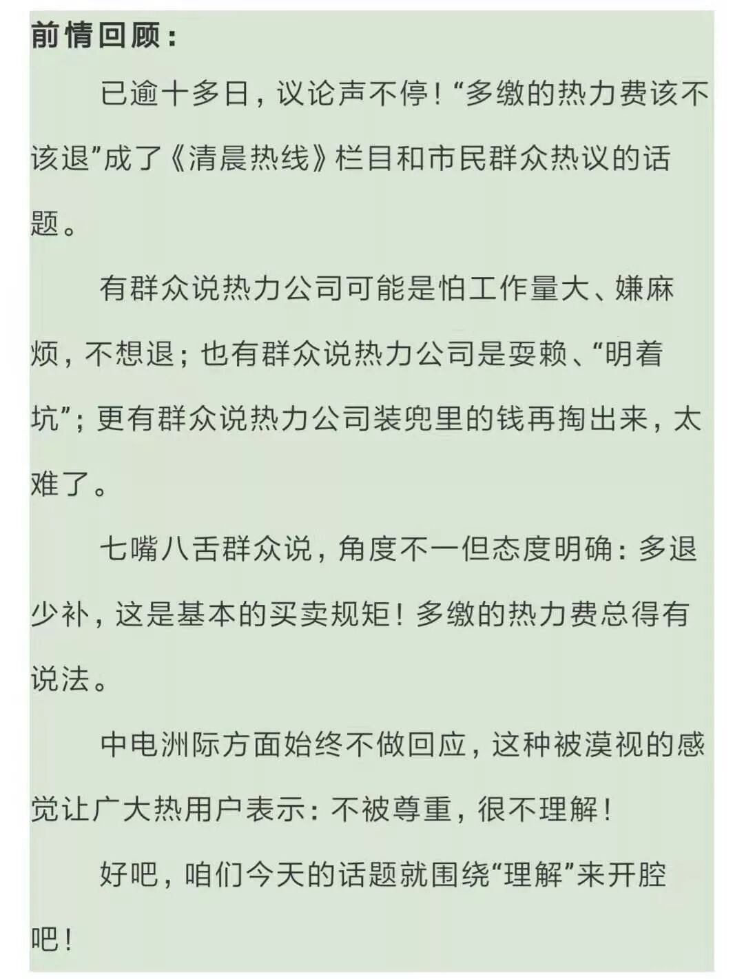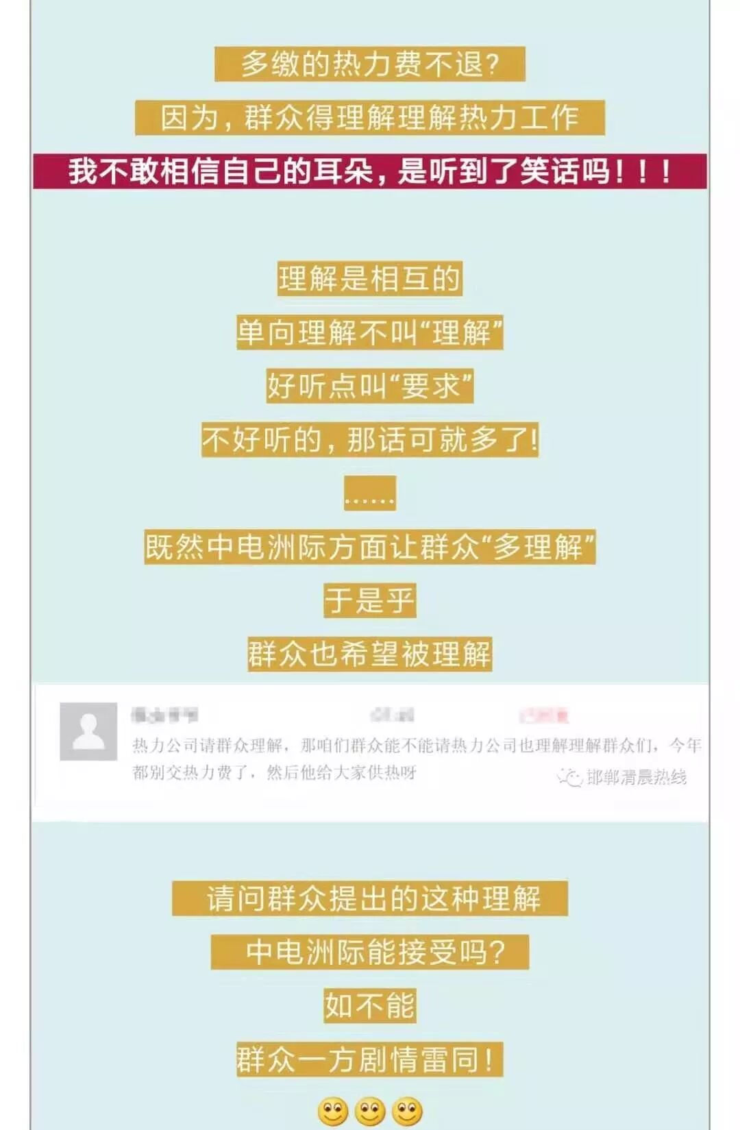 邯郸人多缴的热力费该不该退?中电洲际答:不退!让群众多理解理解!