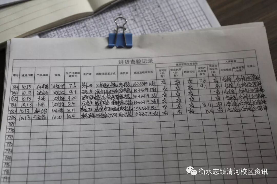 每天的食材会在早上由专门的送菜师傅送到食堂进行验收,严格检查,确保安全,日期、色泽、新鲜度等有保障,食堂人员严格把控进货关,收货验收索证索票,记录仔细清楚。食堂食材源头可追溯,供货渠道正规可靠,均由资质齐备的厂家提供。