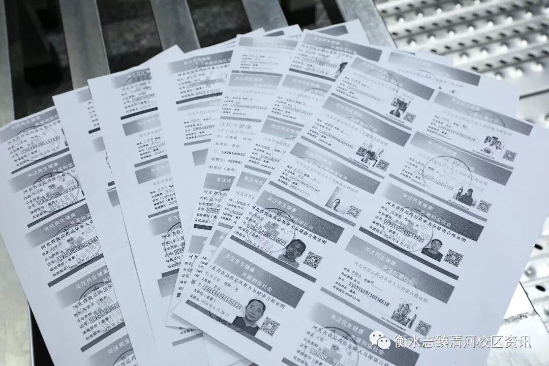 加强食堂工作管理,要求食堂所有从业人员上岗前取得健康证,并在学校食堂公示栏进行公示,此外,学校后勤不定期对食堂员工进行相关操作规范培训。