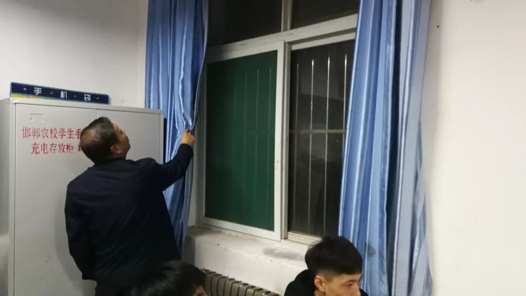 晚自习时间,于保国和值班班主任一起查看学生学习秩序、教室文化建设、与学生干部了解教室多媒体和手机充电箱使用和管理等情况。他督促学生处、团委要加快谋划教室文化建设,要每天带领值班班主任老师到教室查看,及时解决教室窗帘、灯管、桌凳等物品损坏问题,提升服务学生质量。