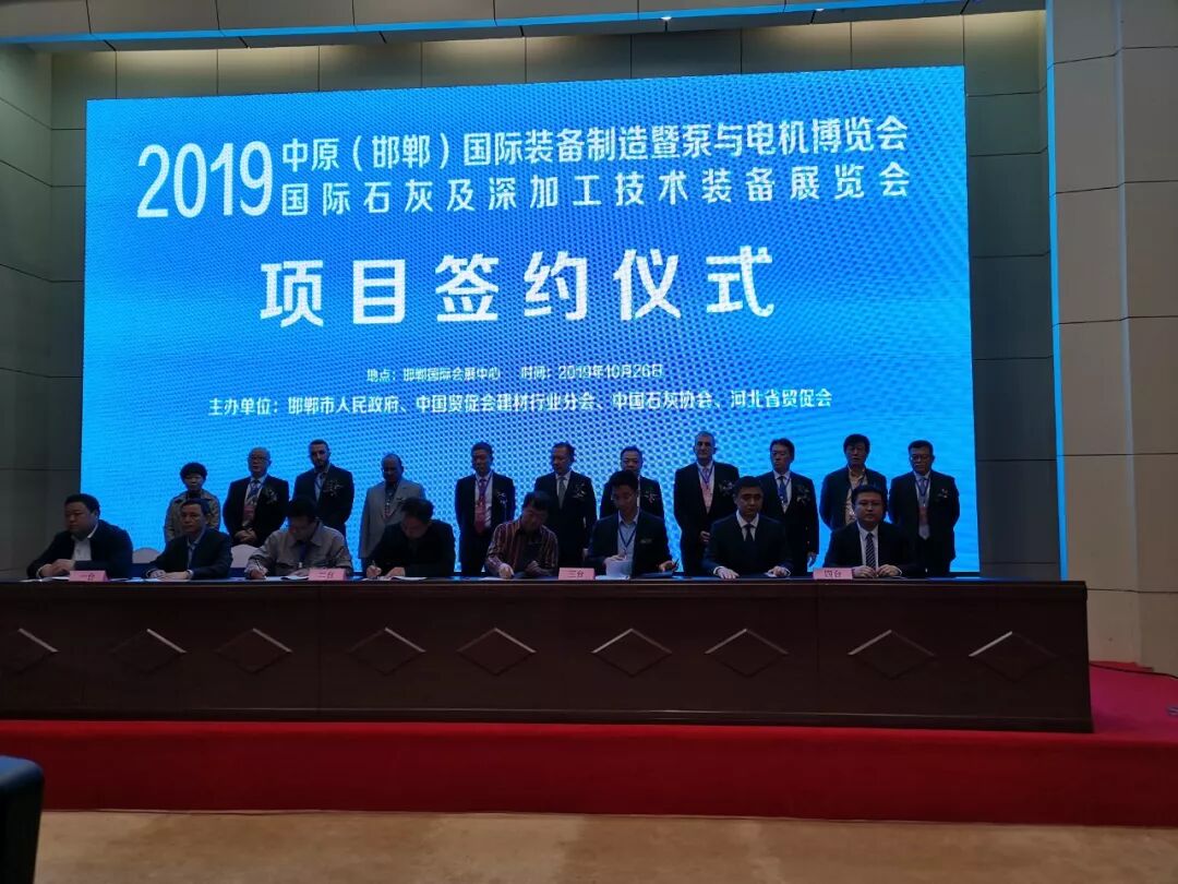 区招商局组织参加2019中原(邯郸)国际装备制造暨泵与电机博览会和2019国际石灰及深加工技术装备博览会项目签约