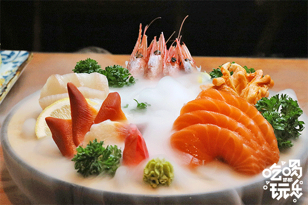 自带仙气上桌,是爱吃刺身的饕客们的宠儿,不同的刺身只需要轻轻蘸上一点酱油调味即可。