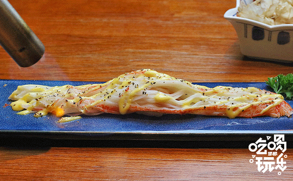 火枪轻轻略过表面,轻微的滋滋声伴随着香气袭来,微微焦黄的色泽让人食欲大增。