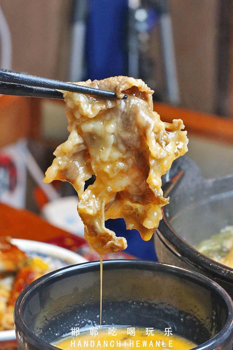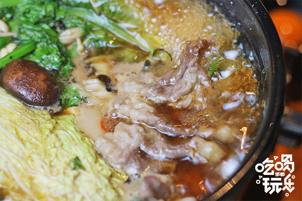 夹起一片澳洲进口牛肉放入锅中,让沸腾的锅底慢慢融入肉中,再沾上店内的无菌蛋,简直不要太满足!