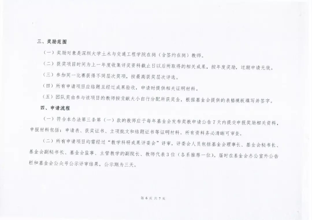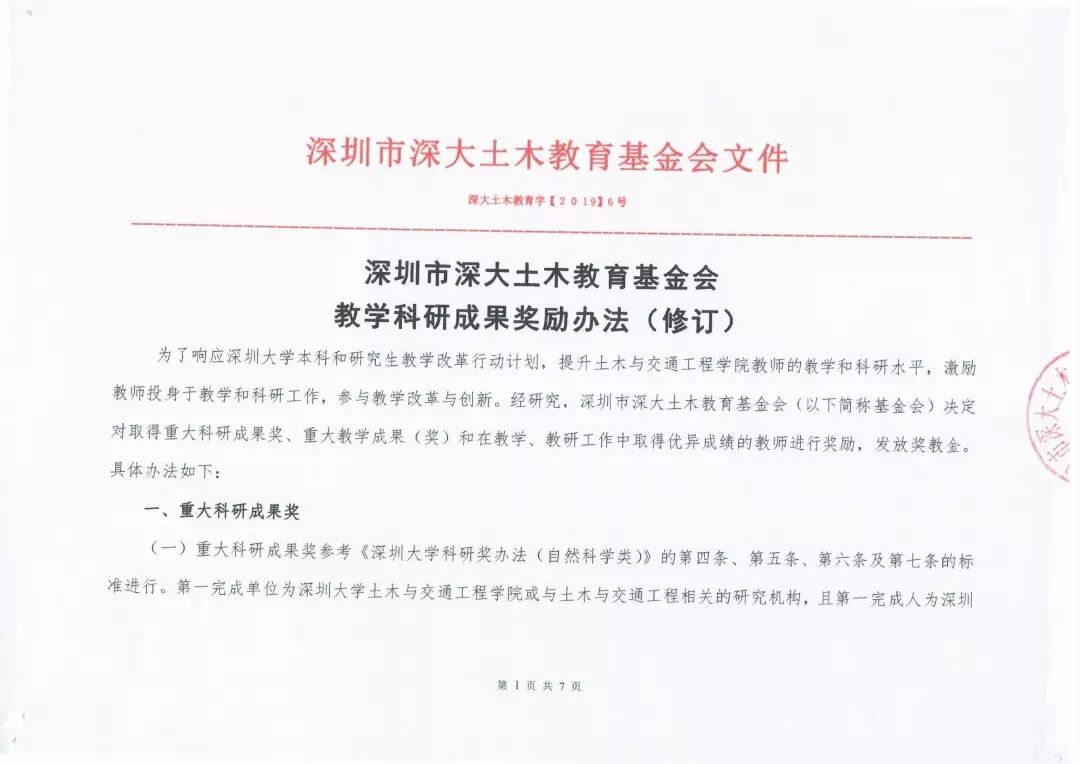 深圳市深大土木教育基金会教学科研成果奖励办法(修订)