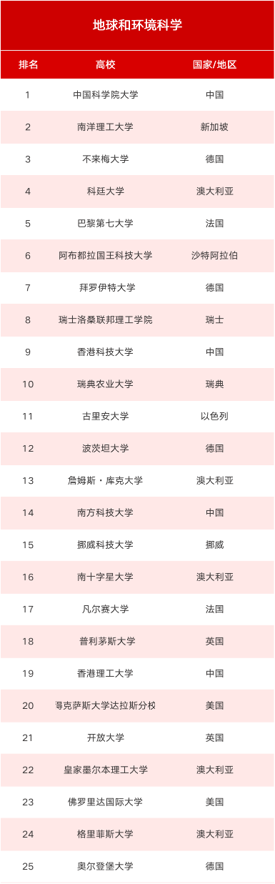 ◆ 此次自然指数网站还公布了按学科排名的榜单: 以下依次为:化学、地球和环境科学、生命科学、物理科学
