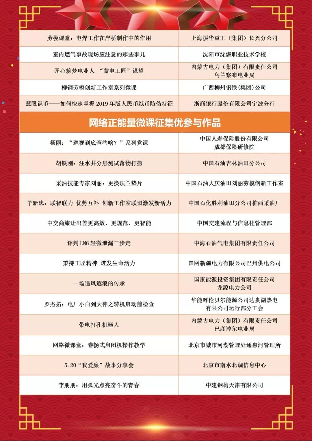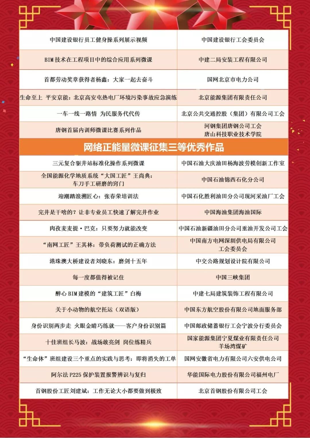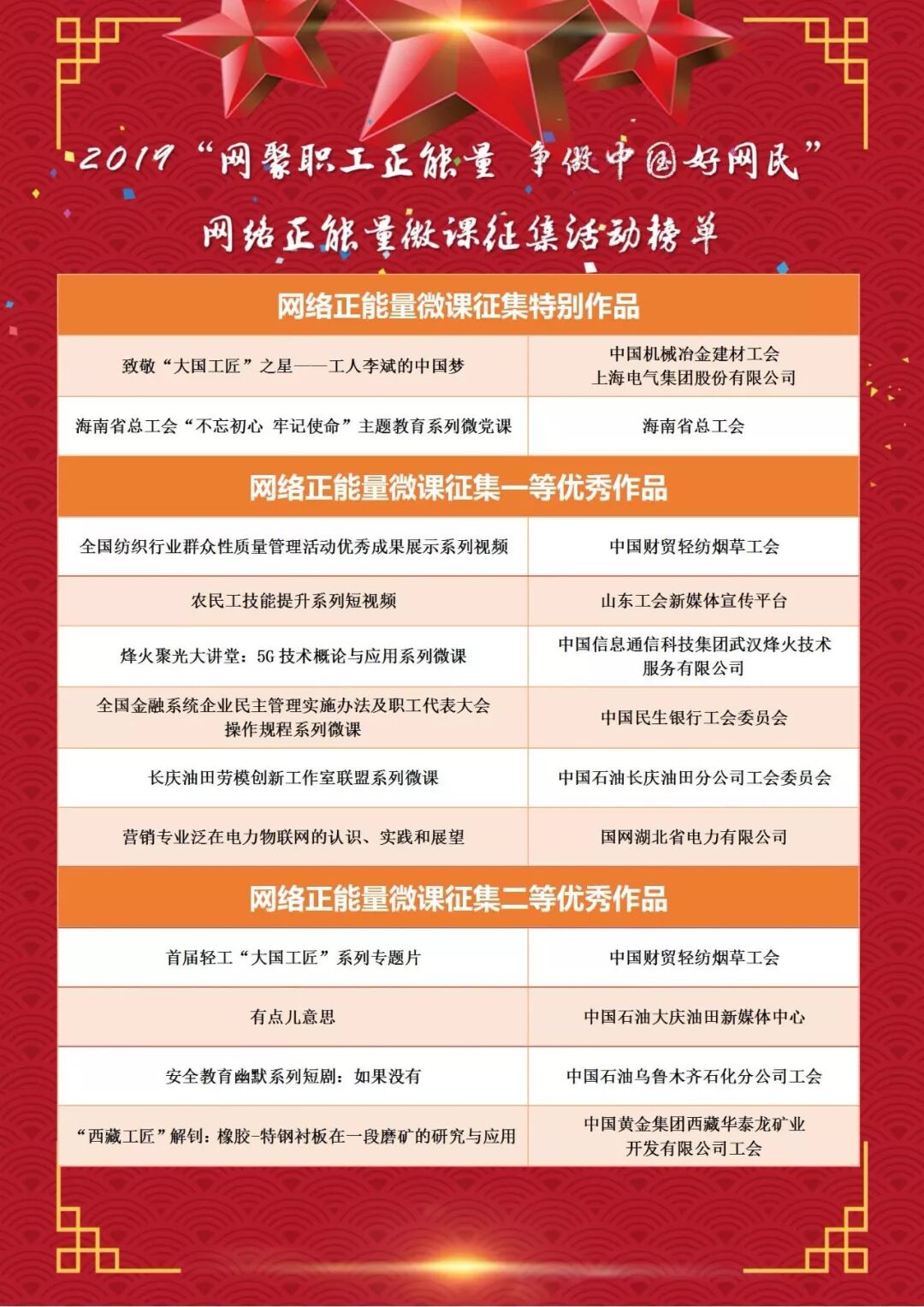 由中华全国总工会、中央网信办主办,中国工人出版社承办的2019“网聚职工正能量 争做中国好网民”主题活动之“网络正能量微课征集“活动评选结果已揭晓!