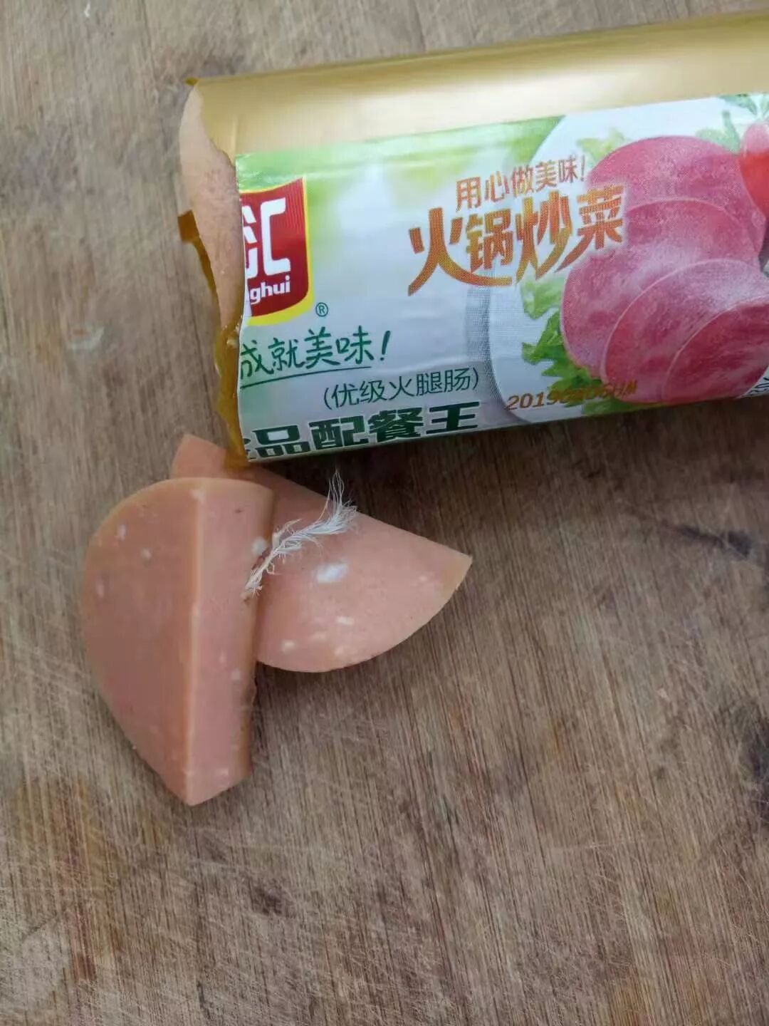 网友爆料:在郓城唐塔北双汇冷鲜肉买的火腿肠,切开发现有这种东西!双汇火腿又出新产品了吗?