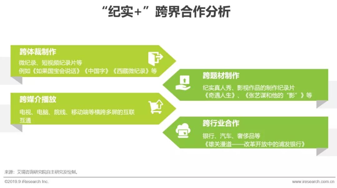 “纪实+”为纪录片商业化带来更广阔的发展空间近年来,电视媒体广告收入呈下降趋势,仅仅依靠广告的盈利模式对纪录片项目显然已经趋于颓势。为此“纪实+”跨界成了纪录片人必然的出路之一。纪录片不仅具有普通娱乐产品的属性,更是一种高效的传播载体,纪录片的商业价值正被逐步挖掘。近几年,其他产业与纪录片的跨界合作也正从简单的经济行为向着更深层次迈进,对纪录片行业有着超乎想象的推动力。近几年纪录片与其他产业的跨界案例已经不胜枚举,汽车、银行和奢侈品等企业都在与纪录片业跨界合作。在新兴媒介技术驱动下,泛纪实内容生态呈现出新景观,纪录片边界和类型的模糊化,让产业背后拥有更多想象力。
