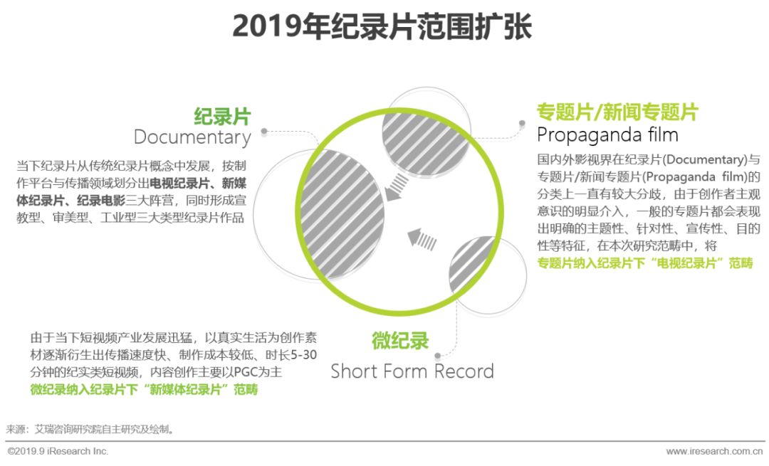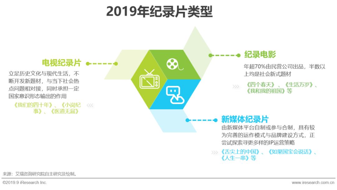 纪录片内容类型三大类型各具特色,协同发展经过近些年的发展,纪录片从制作平台与传播领域上划分可分为电视纪录片、新媒体纪录片、纪录电影三大类型。其内容各具特色,协同发展。1.电视纪录片是以电视节目形式为创作载体,电视台专业纪录频道、省级卫星综合频道等为主要发行、传播平台,内容类型多以宣教型为主,致力于以平民视角与真情实感出发,引起时代共鸣。2.新媒体纪录片艺术形式多样,以主流视频平台、短视频平台、新闻资讯平台、自媒体平台为发行、传播平台,以极强的活力扩宽了纪录片的题材方向、表现形式与传播渠道。3.纪录电影作为纪录片在电影领域的分支,以电影形式为创作载体,以电影院线为主要发行、传播平台。具有极强的艺术价值与商业价值,2019年纪录电影市场仍在持续发展中。