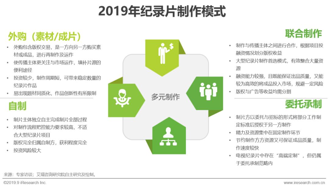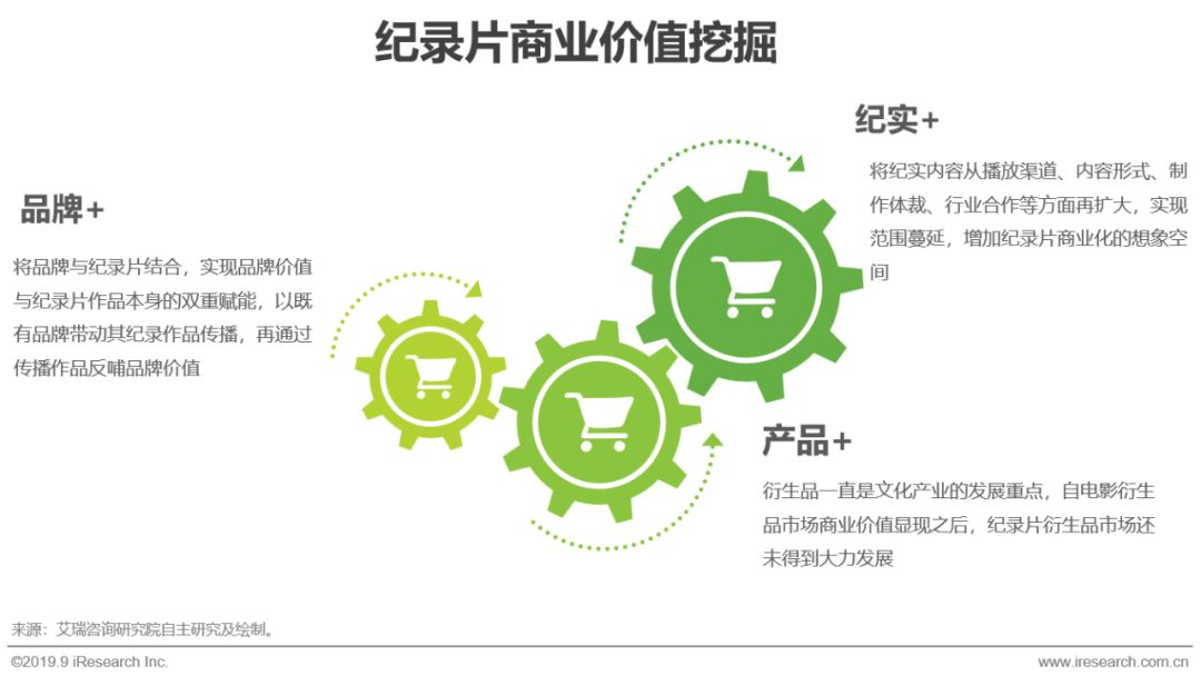 纪录片商业价值概述多角色入局,扩大纪录片商业空间随着近些年来新媒体与民营企业的入局,拓宽了纪录片的传播渠道与制作空间,增加了纪录片渠道与内容的种类,使大众对纪录作品更为熟识,同时也积淀了一批核心用户。而更多的,是扩大了纪录片在商业化进程中的想象空间,将纪录片与其他领域的角色赋能,在商业模式、价值空间、内容范围上实现革新,为之后的纪录片商业化发展提供了新思路。