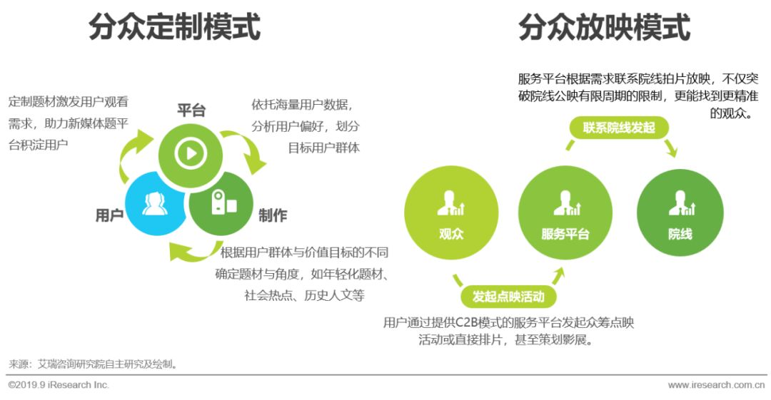 依托新媒体策略,“分众”模式为纪录片精准定位用户随着纪录片产业的发展,制作用户喜欢的作品与将优质作品精准触达核心用户成为纪录片行业的痛点。分众定制模式与C2B分众放映模式将成为纪录片产业发展一大趋势。一方面,新媒体平台依托其海量用户数据趋势开展分众定制模式,分析不同属性的用户喜好,反推纪录片创意构思及制作,以痛点作品进一步沉淀核心用户,以达到“分众定制,多方触达”的传播效果。未来,电视台或将通过网络调研、平台创意合作等形式开展分众定制,为纪录片的细分市场运作增强信心。另一方面,受障于用户付费模式与用户娱乐需求,纪录电影市场发展迟缓。在传统花费大量资金用作宣发的B2C模式中用户与院线得不到有效匹配,并不适合资源有限的纪录片作品。C2B模式将主动权“交还”给用户,以用户反驱优质作品传播,实现以需求驱动传播。