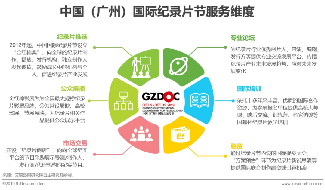 产业服务端驱动:支持平台成熟,全方位促进中国纪录片产业发展专业平台的诞生为中国纪录片产业搭建了更专业的舞台,吸引全球媒体的关注提高纪录片产业的曝光度,助力中国纪录片走向更广阔的国际市场。中国(广州)国际纪录片节创始于2003年,是国内唯一具备纪录片投融资、交易功能的国家级专业平台与国际化影视节展。一方面,为全球纪录片提供专业服务,包括优秀纪录片推选(金红棉奖)、市场交易、融资、专业论坛、国际培训和公众展播(金红棉影展)六大维度。另一方面,中国(广州)国际纪录片节还与国际上著名纪录片专业电影节建立了友好合作关系,通过系统化、专业化、国际化的服务流程,为中国电视平台提供国际合作的全流程服务。