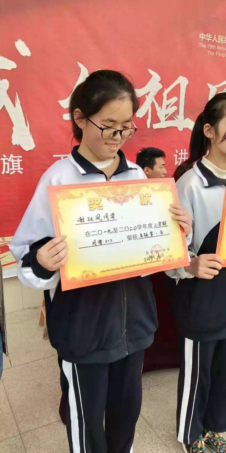 表彰大会最后,由年级第一名、四科状元获得者:初二(1)班谢双凤同学发言,她的发言一方面总结了自己的学习经验,另一方面勉励同学们要珍惜学习时光,热爱母校,勤奋努力,不负青春!校长助理杨振华做总结发言,勉励初二年级全体师生以第一次月考为新的起点,总结经验,扬帆起航,昂首奋进,争取今后取得更大的进步!