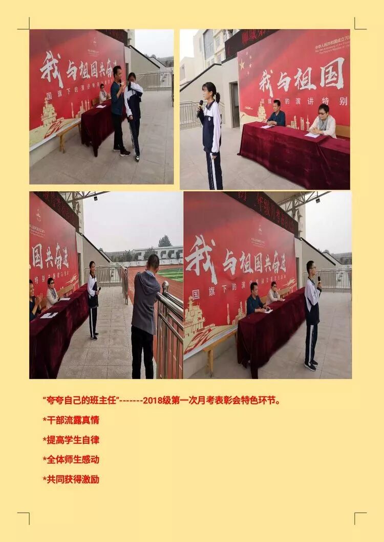 校长助理杨振华临时增设的“黄金60秒夸夸我的班主任”小环节受到了周书峰副校长的好评!