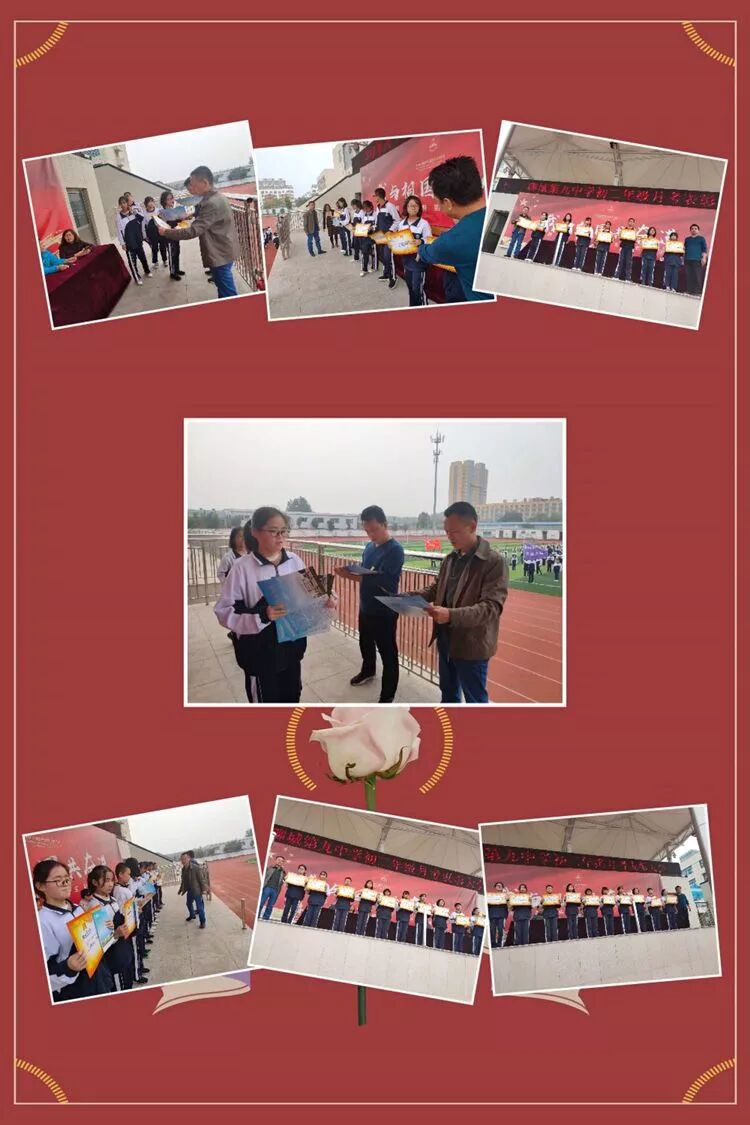 雄关漫道真如铁,而今迈步从头越。新的学期,承载着聊城九中新的希望。初二年级于2019年10月17至18日进行了入学以来的第一次月考测试,这是一个展现九中学风、班风乃至校风的好机会,孩子们带着一个月以来的热情和努力,秉承着“诚信考试”的理念,意气风发地走上了考场,同时也用最真实的成绩证明着自己的勤奋与努力。因此,月考结束后的10月24日中午,我们对这一阶段表现优秀的同学进行表彰鼓励。