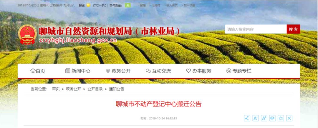 因工作需要,聊城市不动产登记中心将于2019年10月26日搬迁至东昌西路176号(原市规划局办公楼一、二楼大厅),10月28日(星期一)起在新址办公,原办公场所停止办公。