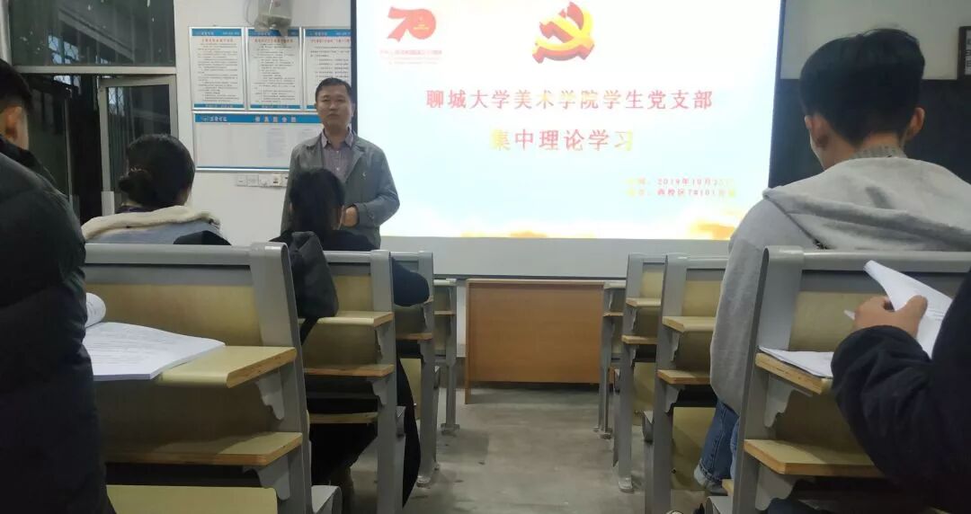 为贯彻落实“不忘初心,牢记使命”主题教育活动相关部署,进一步抓好党支部建设工作,提高党员的理论知识水平。10月25日,我院于西校区7号楼101合堂举办“聊城大学美术学院学生党支部集中理论学习”主题党日活动,会议由美术学院学生党支部书记杨庆实主持,美术学院组织委员许中美、党支部宣传委员孔德滕列席会议。
