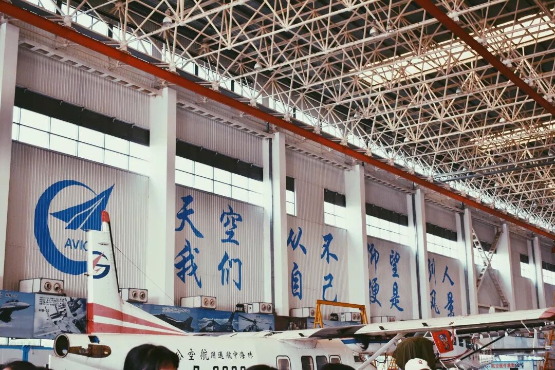 在航空科普基地,同学们参观了飞机总装车间,感受科技的魅力。