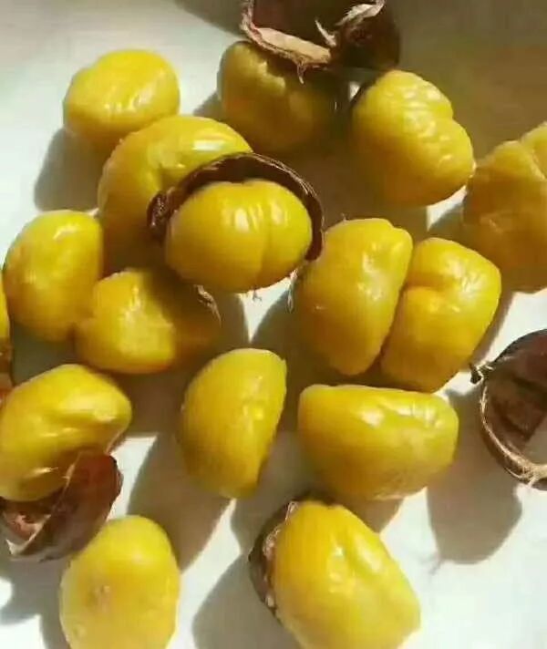 所收购的板栗品种为:早丰,宋家早,黄蓬,老树栗子,晚期板栗。这些板栗海拔高,昼夜温差大,栗肉黄,糯性好,甜度高。