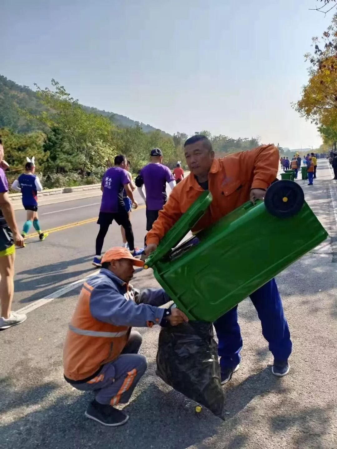 比赛起点 途中和终点设置垃圾桶 移动公厕和路面洗扫