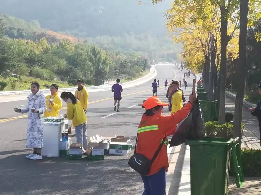 开赛前夕,他们在白天尽全力清扫赛道沿途的环境卫生,深夜也在进行着深度保洁,在人流量大的区域设置好了方便选手和观众使用的临时移动公厕。
