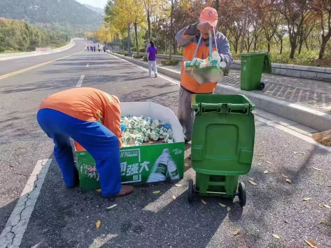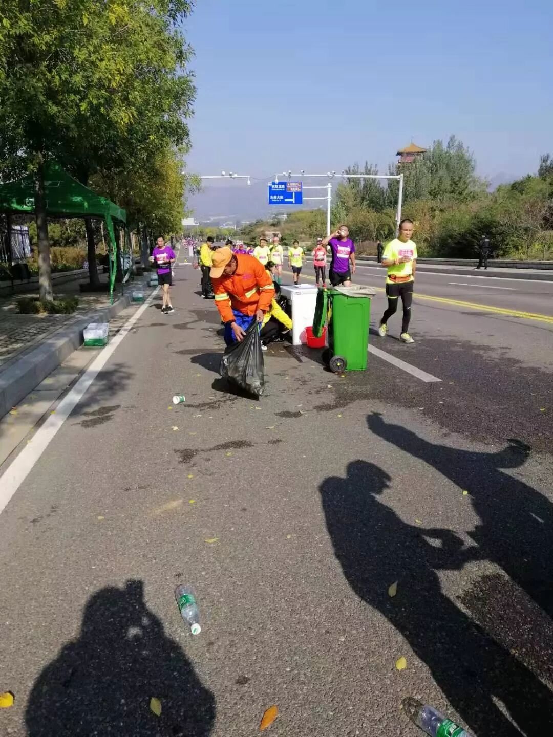 比赛开始,我们的无痕泰马行动也进入白热化,运动员在比赛途中的补充体能和赛道旁的观赛民众难免会或多或少的产生一些垃圾。但是留给这些垃圾“亮相”的机会可不多,只要一产生,都会被沿途的环卫工作人员收拾干净,这些运动员们一路上除了优美的景色,就是这一抹抹鲜艳的橘红。