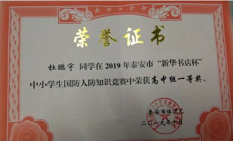 高二十六班的杜鹏宇同学在知识竞赛中脱颖而出,拿到了个人总分一等奖,也就是第一名!