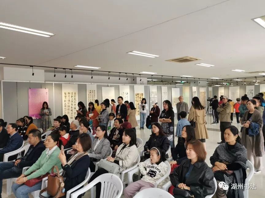 湖州市文联党组书记、主席沈宝山,浙江省书法家协会顾问、湖州市书法家协会名誉主席朱元更,湖州市文联副主席、湖州市书法家协会主席范斌,浙江省女书法家协会副主席、湖州市书法家协会副主席、湖州市女书法家协会主席茹郁青,湖州市书法家协会副主席胡迪权等及社会各界艺术爱好者出席了开幕式。