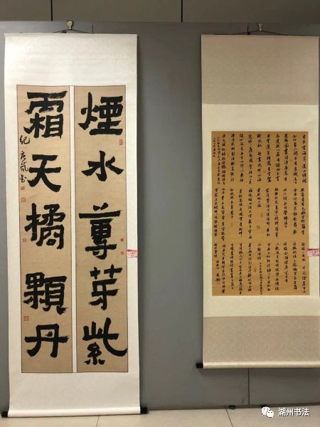2019是中华人民共和国成立70周年的大庆之年。金秋时节,丹桂飘香,10月26日上午由湖州市书法家协会、绍兴书法家协会联合主办,湖州市女书法家协会、绍兴市妇女书法委员会联合承办的“翰墨寄初心·共筑中国梦”湖州·绍兴女书家作品联展在湖州市文化馆隆重开幕,两地女书家以书法艺术的形式,共贺祖国华诞。