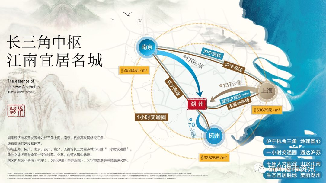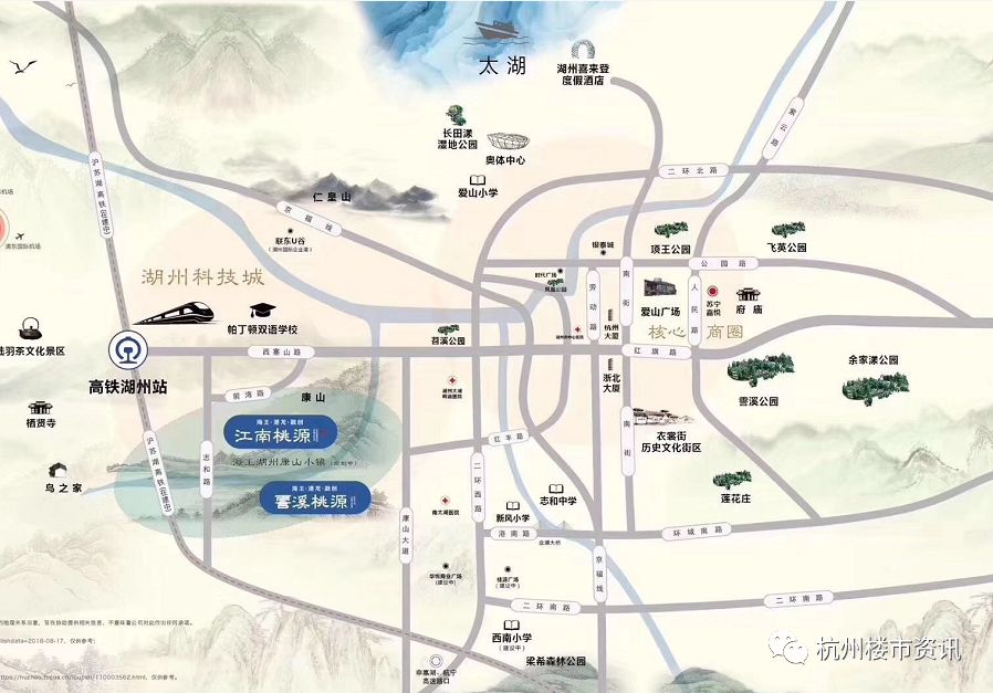 ②:项目向西北方向车行8分钟可到湖州高铁站,即是火车站又是高铁站,到达杭州19分钟