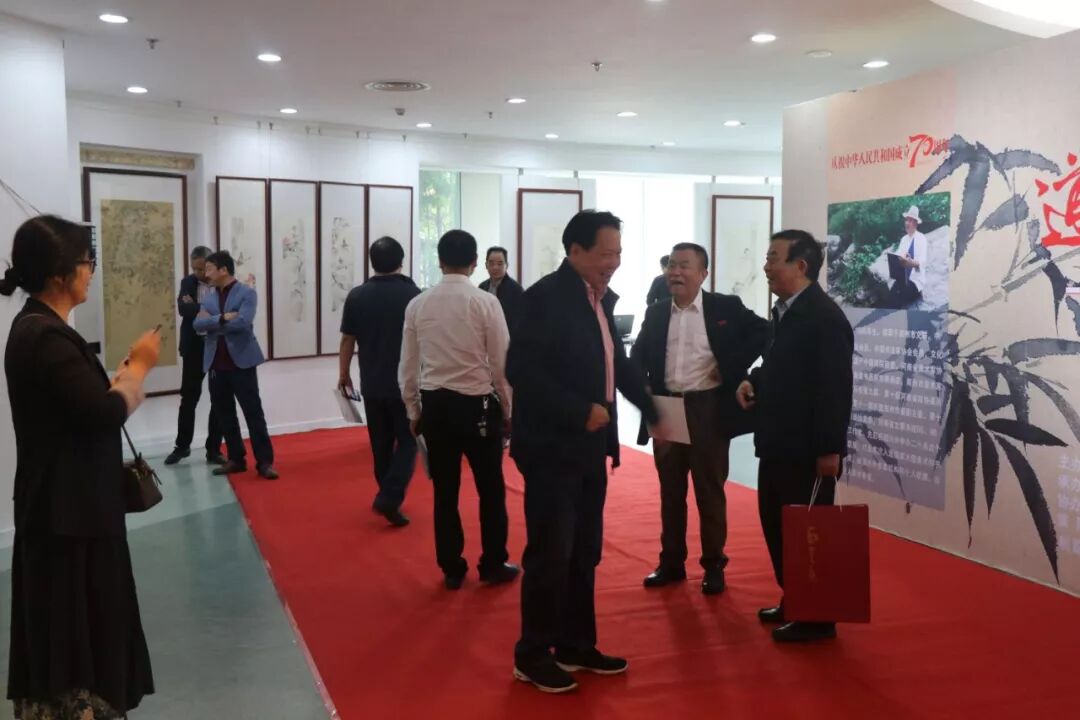 参观开幕式的领导和嘉宾有:湖州市人大常委会副主任曹德平,湖州市政协副主席竺鸽,原湖州市政协主席王金根,原湖州市政协副主席、湖州陆羽茶文化研究会会长杨金土,湖州市工商联党组书记副主席兼市委统战部副部长王枫,湖州市文学艺术界联合会主席沈宝山,湖州市文化广电旅游局副局长沈康明,湖州市美术家协会主席李志刚,浙江省书法家协会副主席朱元更,原广州军区后勤部生产管理部部长陈亮,中国海峡两岸艺术交流协会主席马侨禧,河南郑州市美协主席白金尧,广州华厦美术展览中心有限公司董事长娄玮先生等。