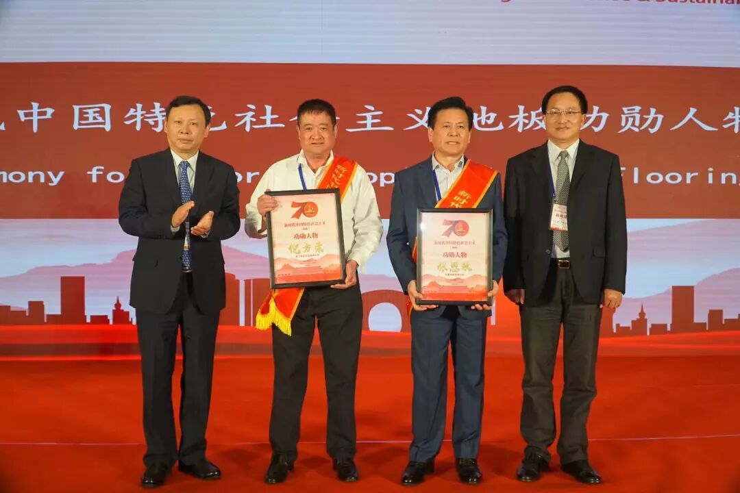 新中国成立70年来,各行各业均发生了翻天覆地的变化,在地板行业有这样一群人,把产业做到了从无到有,从弱到强,使中国的地板产销量稳居世界第一位。中国木材与木制品流通协会授予浙江世友木业有限公司董事长倪方荣、久盛地板有限公司董事局主席张恩玖、浙江森林之星文化地板有限公司董事长徐伟、苏州大卫木业有限公司董事长蒋卫、安信伟光(上海)木材有限公司董事长卢伟光、大自然家居(中国)有限公司董事长佘学彬、德尔未来科技控股集团股份有限公司董事长汝继勇“新时代中国特色社会主义地板行业功勋人物”,并进行了颁奖。