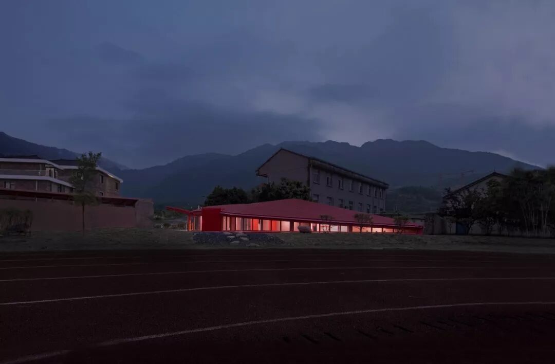 建筑竣工之后,不论是接送孩子的家长,进山旅行的驴友,亦或是田间耕种归来的村民,都愿意在这里驻足。他如高音,迎着太阳,面对远山,奏响小镇居民的幸福生活。