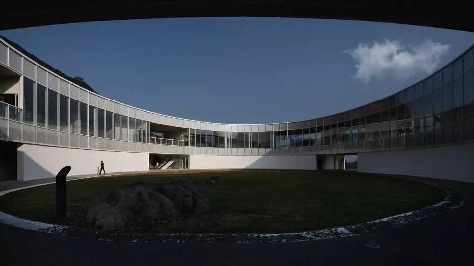参观者来到中心庭院参观、休憩时,会发现椭圆环形的建筑边界把天空风景限定在一个固定的画框里,好像一件大地艺术作品。