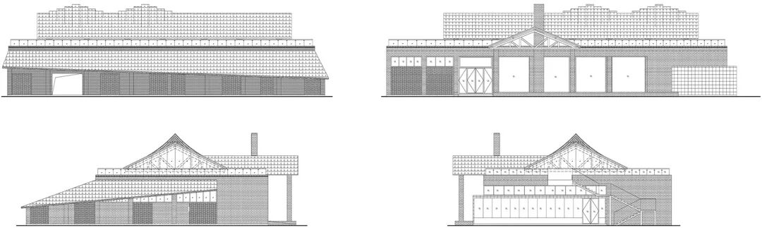 建筑的结构类型选用轻钢框架与当地特色的石墙、柳编工艺,压低墙体高度,上留高窗,采光通风,同时可以纳入树林景观。他们的单元化体量在林间不仅分散,又因行为功能而局部聚合,成为枣林乡野园林空间的新体验模式: