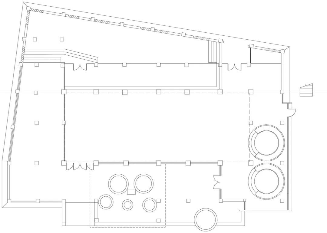 老酒坊总建筑面积约800平米,围墙将酒坊与外界隔离。因常年无人打理,设计团队面对的是残破的红砖木结构酒坊和辅房、发酵池以及废弃的蒸馏罐等设施设备,酒坊原有的生产功能已难以为继。