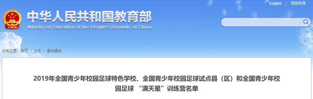 为全面贯彻落实全国教育大会精神,深入落实《中国足球改革发展总体方案》《教育部等6部门关于加快发展青少年校园足球的实施意见》,扎实推进校园足球“八大体系”建设,在有关单位自主申报、各级教育行政部门审核推荐的基础上,教育部组织专家对各地推荐的特色学校、试点县区和“满天星”训练营进行了综合认定。