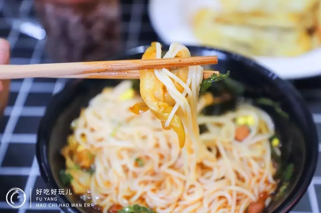 米线很嫩很滑,上面裹满了汤汁的味道,轻轻一嚼,米线的香味和微辣带酸的汤汁在口中绽放,瞬间席卷你的味蕾!