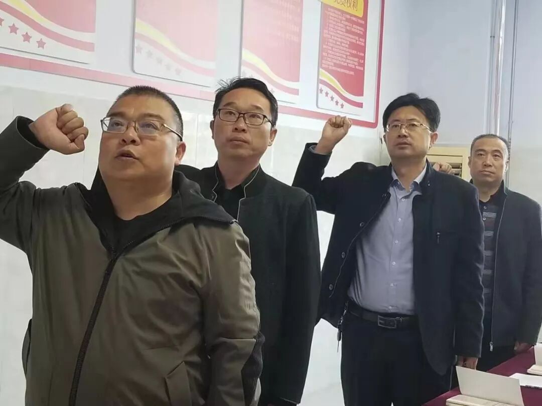 党员们庄重地举起右手,面向党旗,重温入党誓词。