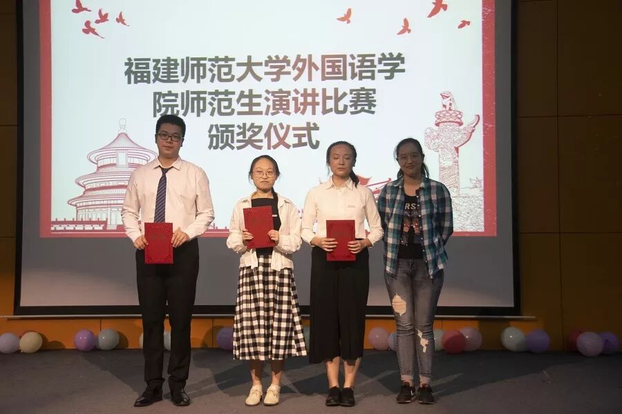 最后,评委老师们为获奖同学颁奖并合影留念,在观众热烈的掌声中,本次院师范生演讲比赛圆满落下帷幕。