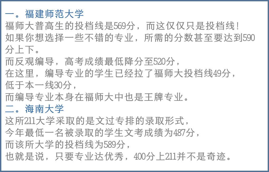 选择编导专业的同学最终录取的文化课分数会比原本该校的文化分最低录取线直降50-100分左右,适合文化分距离直接考取本科或211/985重本有所距离的学生重点考虑,在对专业有兴趣的基础之上,“曲线救国”,提前定位本科或重本。