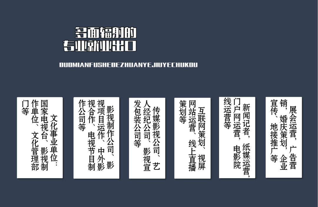 在中国大力发展文化产业,传媒行业急需新鲜血液更新换代的今天,毕业生可以选择在新闻媒体,政府部门、文化产业经济部门、文化事业管理等单位就业,也可以选择继续深造。