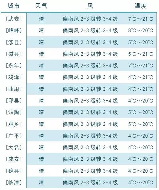 明天夜间到后天白天晴偏南风2-3级转3-4级5℃~21℃