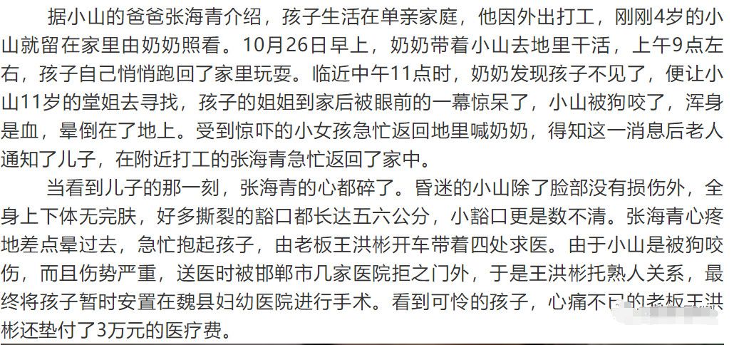 惨不忍睹!邯郸4岁男童被狼狗咬伤,体无完肤……