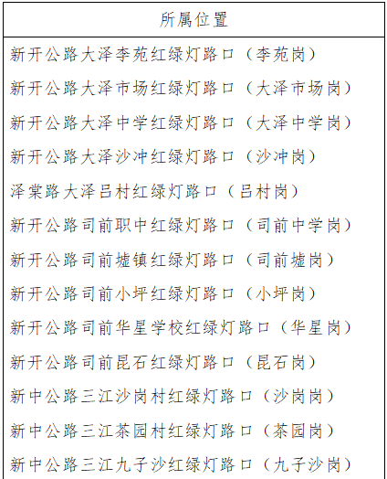 此外,开平交警近日公布出了开平市所有固定式交通技术监控设备设置地点。